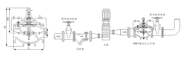 300X緩閉式止回閥由主閥、單向閥、針閥、球閥、微形過濾器和壓力表組成水力控制接管系統(tǒng)。利用水力自動操作,可使主閥得到的開啟或關閉速度。選用300X緩閉止回閥可以防止水鍾水擊的產生,以達到緩閉消聲的效果。該水力控制閥產品利用水力自力控制,不需要其它裝置和能源,保養(yǎng)簡便,開啟及緩閉平穩(wěn)。300X緩閉止回閥系列閥門產品廣泛用于高層建筑、生活區(qū)等供水管網系統(tǒng)及城市供水工程。