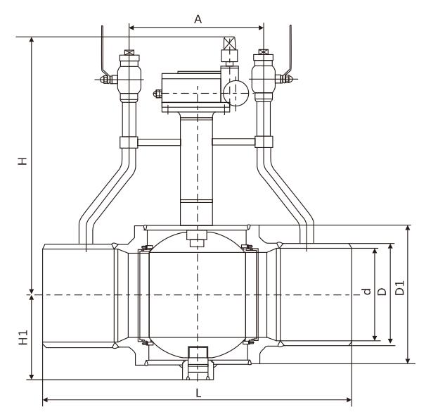 Q367F埋地式帶袖管雙放散焊接球閥產品尺寸: PN16/PN20/CLASS150
